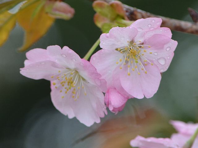 兼六園熊谷(ケンロクエンクマガイ) 春の花 2016年03月26日 兼六園熊谷(ケンロクエンクマガイ)はバラ科サクラ属の落葉小高木である。原木は石川県金沢市の兼六園にある。山桜(ヤマザクラ)と大山桜(オオヤマザクラ)との交雑種ではないかと推定されている。樹高は4メートルから8メートルくらいである。葉は幅の広い楕円形で、互い違いに生える(互生)。葉の先は尖り、縁にはぎざぎざ(鋸歯)がある。葉の裏面は白色を帯びる。開花時期は4月の中旬である。葉の展開と同時に花を咲かせる。葉は始めは赤茶色だが、徐々に緑色に変化する。花弁数は5枚から10枚で、花径は4センチくらいの中輪ないし大輪である。花の色は淡い紅色から紅紫色で、旗弁(きべん:雄しべが花弁のように変化したもの)がある。花弁の形は円形で、縁の色が濃い。萼筒は鐘形、萼片は披針形(笹の葉のような形)でぎざぎざ(鋸歯)はない。属名の Prunus はラテン語の「plum(スモモ)」からきている。種小名の jamasakura は「ヤマザクラ」のことである。写真は4月に三島市の国立遺伝学研究所で撮った。学名:Prunus jamasakura 'Kenrokuen-kumagai'★艶やかな色の濃淡美しく 雨の中でも心は晴れて桜図鑑花図鑑植物図鑑ミラーサイト|味の麺匠戸田久|おこめの鬼平|フロム蔵王|花の本屋さん|楽天トラベル|