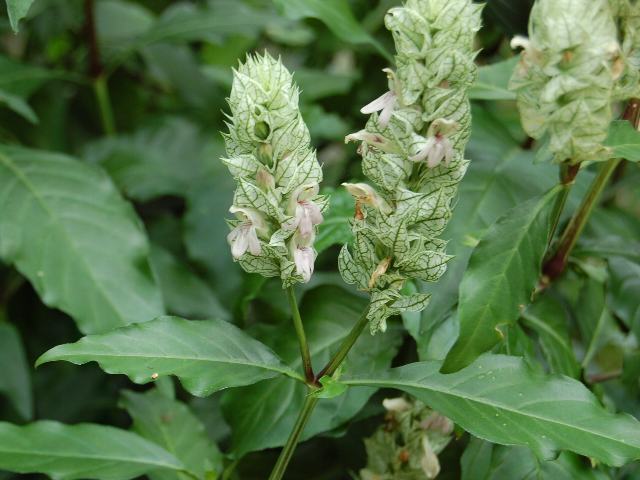 ジャスティシア・ベトニカ 春の花 2012年03月20日 ジャスティシア・ベトニカはキツネノマゴ科キツネノマゴ属(ジャスティシア属)の常緑小低木である。属名の読み方は「ユスティキア」とするものもある。インドから東アフリカにかけて分布する。アフリカでは牧草とされるという。英名はホワイトシュリンププラント(white shrimp plant)である。シュリンププラントは小海老草(コエビソウ)のことで、同じ仲間である。樹高は80~120センチくらいである。葉は細長い卵形で、向かい合って生える(対生)。開花時期は2~4月くらいである。茎先に穂状花序(柄のない花が花茎に均等につく)を出し、淡い紫色の花をつける。花はすぐに枯れるが、白い苞(花のつけ根につく葉の変形したもの)が長く観賞できる。苞には緑色の筋が入る。花の後にできる実はさく果(熟すると下部が裂け、種子が散布される果実)である。属名の Justicia はスコットランドの植物学者「ジャスティス(J. Justice)さん」の名からきている。種小名の betonica は「べトニー(ハーブの名)の」という意味である。写真は6月に神奈川県立フラワーセンター大船植物園で撮った。学名:Justicia betonica★いろいろなタイプの花があるものと 頭に刻むうなずきながら花図鑑植物図鑑|味の麺匠戸田久|おこめの鬼平|フロム蔵王|花の本屋さん|楽天トラベル|