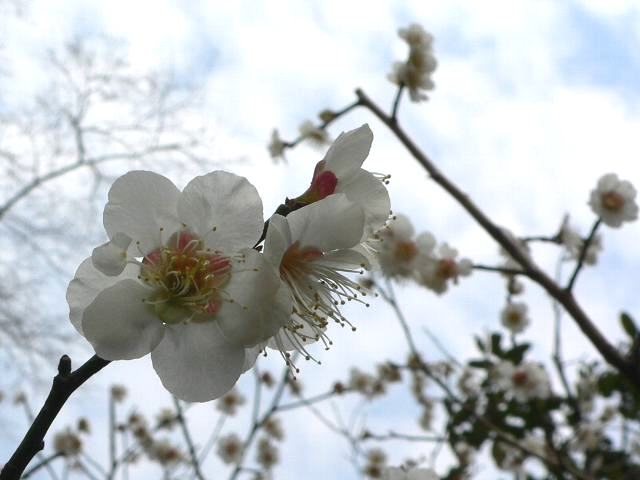 小梅(コウメ) 春の花 2012年02月26日 小梅(コウメ)はバラ科サクラ属の落葉小高木である。庭木用、果樹用として各地に植えられている。分類上は、梅(ウメ)の変種とされている。信州で多く見られることから信濃梅(シナノウメ)の別名がある。同様な理由から甲州梅(コウシュウウメ)と呼ぶ地域もある。栽培は江戸時代から行われてきた。樹高は2~6メートルくらいである。幹はよく枝分かれをする。葉は卵形で、互い違いに生える(互生)。葉には柄があって先は尾状に尖り、縁にはぎざぎざ(鋸歯)がある。梅(ウメ)の葉よりも小振りである。開花時期は3月である。葉の展開に先立って花を咲かせる。花径は2センチ前後で、白い5弁花である。一重咲きで花びらは平らに開き、よい香りがする。萼片は5枚で、紫色を帯びた緑色である。雄しべはたくさんあり、雌しべは1本である。花の後にできる実は球形の核果(水分を多く含み中に種が1つある)で、6~7月に黄色く熟する。実の径は15ミリくらいで、梅(ウメ)よりも小さい。実は梅干として食用にされる。俳句では「梅の花」が春の季語、「梅の実」は夏の季語である。属名の Prunus は「plum(スモモ)」を意味する。種小名の mume は「梅」のことである。変種名の microcarpa は「小さい果実の」という意味である。写真は3月に板橋区立赤塚植物園で撮った。学名:Prunus mume var. microcarpa★果樹園で花を開いた信濃梅 君がなるのかあの梅干に花図鑑植物図鑑|味の麺匠戸田久|おこめの鬼平|フロム蔵王|花の本屋さん|楽天トラベル|
