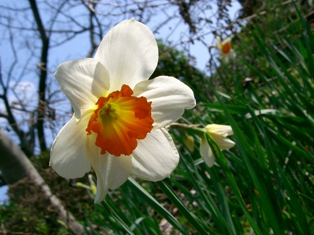 ナルキッスス・セルマラゲロフ 春の花 2012年02月28日 ナルキッスス・セルマラゲロフはヒガンバナ科スイセン属の多年草である。品種名の読み方は「セルマラーゲルレーフ」とするものもある。ヨーロッパで改良された園芸品種の1つである。国際的な分類では大杯水仙(タイハイスイセン)の1つとされる。大杯水仙(タイハイスイセン)というのは、イギリス王立園芸協会(Royal Horticultural Society)の定義では、1茎1花で、副冠の長さが花被片の3分の1以上あるが花被片の長さは超えないもののことである。本種が作出されたのは昭和時代の前期である。草丈は30~50センチくらいである。根際から生える葉は線形である。開花時期は3~4月である。花被片は白ないし淡いクリーム色で、副冠は橙色をしている。大輪である。花の後にできる実はさく果(熟すると下部が裂け、種子が散布される果実)である。属名の Narcissus はギリシャ神話の青年の名からきている。泉に映った自分の姿に恋して死に、その後にこの花が咲き出した。品種名の Selma Lagerlof はスウェーデンの作家で「ニルスの不思議な旅」の作者の名からきている。写真は3月に神奈川県立フラワーセンター大船植物園で撮った。学名:Narcissus 'Selma Lagerlof'★副冠がとても目立つよこの花は 色濃く横にぐんと広がり花図鑑植物図鑑|味の麺匠戸田久|おこめの鬼平|フロム蔵王|花の本屋さん|楽天トラベル|