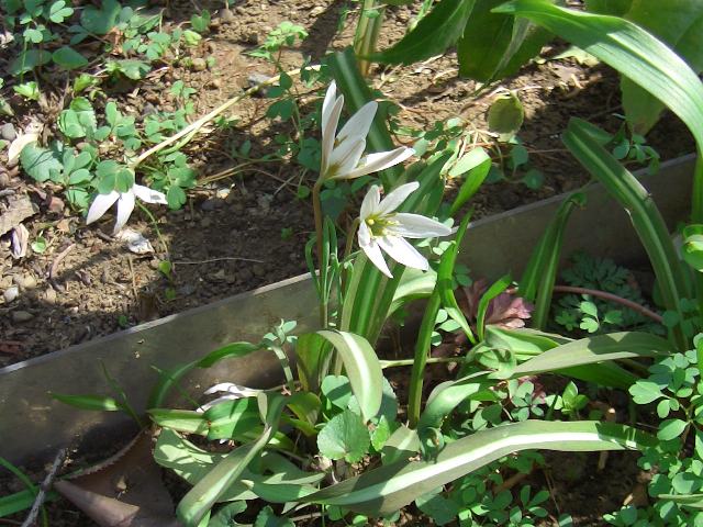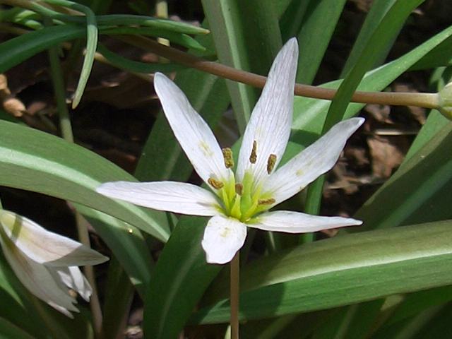 広葉の甘菜(ヒロハノアマナ) 春の花 2012年03月01日 広葉の甘菜(ヒロハノアマナ)はユリ科アマナ属の多年草である。広葉甘菜(ヒロハアマナ)の別名がある。日本固有種である。本州の東北地方から九州にかけて分布し、山地の林の中や明るい草地に生える。環境省のレッドリスト(2007)では、「絶滅の危険が増大している種」である絶滅危惧II類(VU)に登録されている。草丈は15~20センチくらいである。葉は線形で、幅が1~2センチと広く、長さは30センチくらいある。葉の中央に白い線が1本入るのが特徴である。開花時期は3~4月である。茎先に1つの花をつける。花びら(花被片)は6枚で白く、紫色の筋が入る。日が差さないと花は開かない。花の後にできる実はさく果(熟すると下部が裂け、種子が散布される果実)である。「甘菜」の名の由来は、地中の鱗茎が食用になり、それが甘いことからきている。属名の Amana は「アマナ」のことである。種小名の latifolia は「広葉の」という意味である。写真は3月に練馬区の牧野記念庭園で撮った。学名:Amana latifolia★さり気なく春の訪れ伝え咲く 広葉甘菜の小さな命PR