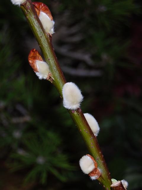 丸葉柳(マルバヤナギ) 春の花 2012年02月11日 丸葉柳(マルバヤナギ)はヤナギ科ヤナギ属の落葉高木である。別名を赤芽柳(アカメヤナギ)ともいう。本州の東北地方から九州にかけて分布し、川岸などの湿地に生える。また、庭木とされる。海外では、朝鮮半島や中国にも分布する。樹高は10~20メートルくらいである。葉は楕円形で、互い違いに生える(互生)。葉の縁にはぎざぎざ(鋸歯)がある。雌雄別株である。開花時期は4~5月くらいである。黄緑色の花を穂状につける。花の後にできる実はさく果(熟すると下部が裂け、種子が散布される果実)である。和名の由来は、葉に丸みのあることからきている。また、新芽や若葉が紅色を帯びることから赤芽柳(アカメヤナギ)と呼ばれる。属名の Salix はケルト語の「sal(近い)+lis(水)」からきている。水辺に多いことから名づけられた。種小名の chaenomeloides は「ボケ属(Chaenomeles)に似た」という意味である。写真は1月に千葉市花の美術館で撮った。学名:Salix chaenomeloides★柳にも種類いろいろあるんだね 芽の色赤い丸葉柳は花図鑑植物図鑑|味の麺匠戸田久|おこめの鬼平|フロム蔵王|花の本屋さん|楽天トラベル|