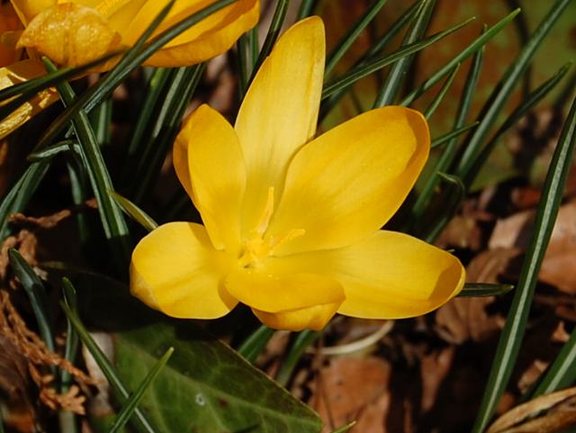 クロクス・クリサンツス 冬の花 2012年02月12日 クロクス・クリサンツスはアヤメ科サフラン属の多年草である。原産地はギリシャ、東ヨーロッパ、西アジアなどである。草丈は10~20センチくらいである。葉は細い線形で、真ん中に白い筋が入る。開花時期は2~4月である。花びら(花被片)は6枚である。花の大きさは4~6センチくらいである。花の色には黄色である。花の後にできる実はさく果(熟すると下部が裂け、種子が散布される果実)である。黄花種の交配親となっている。属名の Crocus はギリシャ語の「croke(糸)」からきている。雌しべが糸状となることから名づけられた。種小名の chrysanthus は「黄色の花の」という意味である。写真は2月に神奈川県立フラワーセンター大船植物園で撮った。 学名:Crocus chrysanthus★クロッカス黄色い花も麗らかな 春を手招く我も仲間と花図鑑植物図鑑|味の麺匠戸田久|おこめの鬼平|フロム蔵王|花の本屋さん|楽天トラベル|