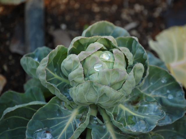 芽キャベツ(メキャベツ) 果実・野菜 2012年02月14日 芽キャベツ(メキャベツ)はアブラナ科アブラナ属の一年草である。原産地はベルギーである。日本へは明治時代の初期に渡来した。分類上は、キャベツと変種同士とされている。別名を子持ち甘藍(コモチカンラン)という。甘藍(カンラン)はキャベツの別名である。草丈は30~90センチくらいである。茎の中ほどから上部の葉の脇に芽がつく。その芽が、直径2~4センチのキャベツ状に結球する。ビタミンCを多く含み、食材とされる。花を見ることは少ないが、株を放置すると、花茎が伸びて菜の花が咲く。属名の Brassica はキャベツの古いラテン名からきている。種小名の oleracea は「食用蔬菜の」という意味である。変種名の gemmifera は「むかごのある」という意味である。写真は1月に千葉市花の美術館で撮った。学名:Brassica oleracea var. gemmifera★野菜にもいろんなタイプあるんだね これは芽キャベツ味はどうかな花図鑑植物図鑑|味の麺匠戸田久|おこめの鬼平|フロム蔵王|花の本屋さん|楽天トラベル|