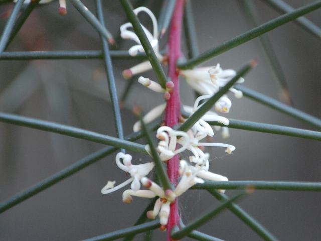 ハケア・セリケア 冬の花 2012年01月15日 ハケア・セリケアはヤマモガシ科ハケア属の常緑低木である。原産地はオーストラリアの東部である。樹高は1~3メートルくらいである。よく枝分かれをする。葉は長さが6ランチくらいあり、棘のようで先が鋭く尖る。そのため原産地では垣根として利用されている。開花時期は冬から春である。 花の色は白ないし桃色である。花には香りがある。花の後にできる実は堅果(皮が堅く、種と接触せずに種を包んでいる果実)である。この実は山火事になると弾けて種を保存するという。属名の Hakea はドイツ人の植物学者「ハケ(C. L. Hake)さん」の名からきている。種小名の sericea は「絹糸状の」という意味である。下の写真は11月に神奈川県立フラワーセンター大船植物園で撮った園芸品種のピンクフォーム(Pink Form)である。学名:Hakea sericea★怖ろしい棘の隙間に花咲かす ハケア・セリケア不思議の世界花図鑑植物図鑑|味の麺匠戸田久|おこめの鬼平|フロム蔵王|花の本屋さん|楽天トラベル|