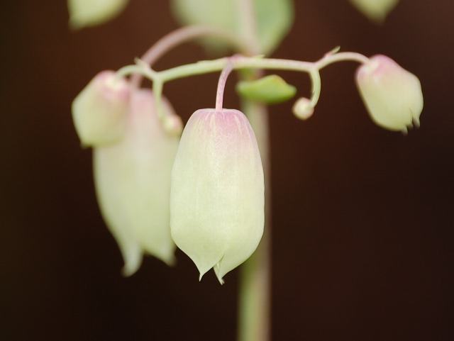 セイロン弁慶(セイロンベンケイ) 冬の花 2012年01月11日 セイロン弁慶(セイロンベンケイ)はベンケイソウ科リュウキュウベンケイ属(カランコエ属)の常緑多年草である。原産地は南アフリカである。現在では熱帯・亜熱帯地域に広く帰化している。日本でも、西南諸島や小笠原諸島に帰化している。草丈は100~150センチくらいである。多肉植物で、葉は単葉であるが成長すると羽状複葉になる。開花時期は12~1月である。長さ30~70センチの円錐花序(下のほうになるほど枝分かれする回数が多く、全体をみると円錐形になる)を出し、緑白色ないし橙色の鐘形の花を垂れ下がらせる。葉を切り取って表向きにしておくと、葉脈の端から新しい芽が出る。そこから、葉から芽(ハカラメ)という園芸名もつけられている。別名を灯籠草(トウロウソウ)という。属名の Kalanchoe は、中国名の「加籃菜」の音に由来するという説がある。種小名の pinnata は「羽状の」という意味である。写真は2月に夢の島熱帯植物館で撮った。学名:Kalanchoe pinnata★地味だけどとても変わった性質(たち)がある セイロン弁慶温室に咲き植物図鑑花図鑑|味の麺匠戸田久|おこめの鬼平|フロム蔵王|花の本屋さん|楽天トラベル|