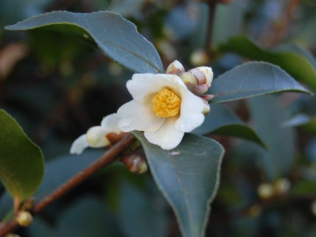 尖り葉椿(トガリバツバキ) 冬の花 2012年01月13日 尖り葉椿(トガリバツバキ)はツバキ科ツバキ属の常緑低木である。原産地は中国の南部で、雲南省などの標高400~1000メートルの山の斜面に生える。中国名は「尖葉山茶」である。学名からカメリア・クスピダータとする場合もある。樹高は1~3メートルくらいである。葉は長さ3~9センチの楕円形で、先は尾状に尖る。開花時期は1~3月くらいである。花の色は白く、花径は20~25ミリくらいと小さい。花びらの数は6~7枚である。花の後にできる実は球形のさく果(熟すると下部が裂け、種子が散布される果実)である。油料植物とされる。また、多くの交雑種の交配親となっている。属名の Camellia はイエズス会の宣教師「カメル(G. J. Kamell)さん」の名からきている。マニラに住み、東アジアの植物を採集した。種小名の cuspidata は「急に尖った」という意味である。写真は12月に小石川植物園で撮った。学名:Camellia cuspidata★尖った葉個性に満ちたその姿 花は小さくたくさんついて花図鑑植物図鑑|味の麺匠戸田久|おこめの鬼平|フロム蔵王|花の本屋さん|楽天トラベル|