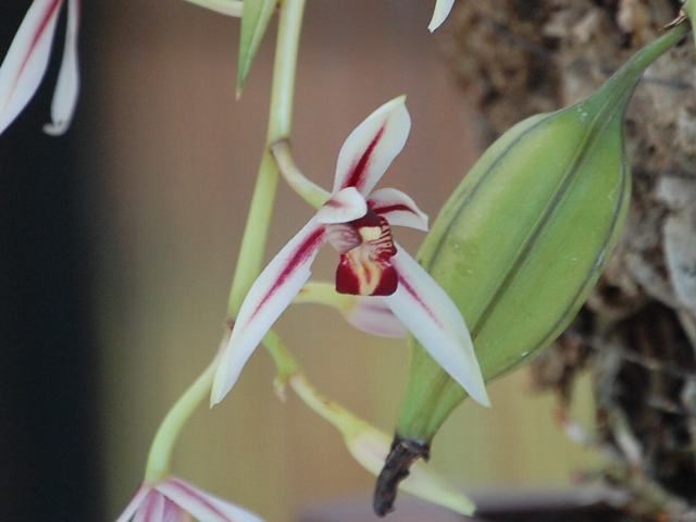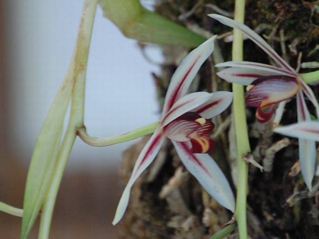辺塚蘭(ヘツカラン) 秋の花 2011年12月27日 辺塚蘭(ヘツカラン)はラン科シュンラン属の多年草である。鹿児島県から沖縄県にかけて分布し、常緑樹林内の樹上に生える着生蘭である。海外では、台湾、中国、フィリピン、ベトナム、インドネシア、マレーシア、ヒマラヤ、インドなどにも分布する。台湾からインドにかけて分布する寒鳳蘭(カンポウラン)の変種で、やや小形ある。和名の由来は、鹿児島県肝属郡佐多町辺塚で発見されたことからきている。しかし、自生地では愛好家による乱獲によって絶滅状態に近いという。環境省のレッドデータリスト(2007)では、「ごく近い将来における絶滅の危険性が極めて高い種」である絶滅危惧IA類(CR)に登録されている。草丈は30~40センチくらいである。線形の葉が5~6枚出て、緩やかに反り返る。葉は革質で艶がある。開花時期は10~12月である。花茎が弓状に下垂する。3枚の萼片と花弁のうち2枚は白く、中央に紅紫色の筋が入る。もう1枚の花弁を唇弁という。唇弁は黄白色で、浅く3つに裂ける。2枚の側裂片には赤紫色の筋が数本入る。真ん中の裂片には幅の広い赤紫色の縁取りが入る。花径は4~5センチである。属名の Cymbidium はギリシャ語の「cymbe(舟)+eidso(形)」からきている。唇弁の形から名づけられた。種小名の dayanum はイギリス人のラン愛好家「ダイ(John Day)さんの」という意味である。変種名の austro-japonicum は「南日本の」という意味である。写真は10月に神代植物公園の野草展(東京山草会)で撮った。学名:Cymbidium dayanum var. austro-japonicum★南国のムード伝える赤い筋 燃えるがごとく辺塚蘭咲く花図鑑植物図鑑|味の麺匠戸田久|おこめの鬼平|フロム蔵王|花の本屋さん|楽天トラベル|