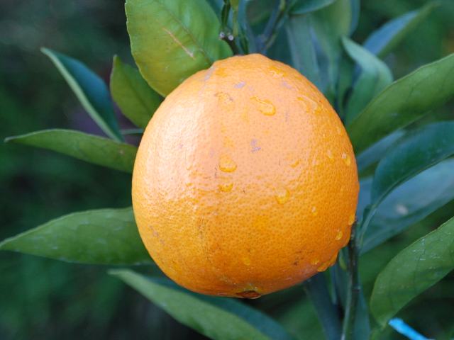 ネーブル 果実・野菜 2011年12月30日 ネーブル(navel)はミカン科ミカン属の常緑低木である。原産地はインドのアッサム地方である。中国を経てリスボンに伝わり、そこから世界中に伝播した。別名をネーブルオレンジ、甘橙(アマダイダイ)とも言う。樹高は1~2メートルである。葉は卵形で、互い違いに生える(互生)。開花時期は5~6月である。白い5弁花である。実は柑果(多心皮性の液果)で、頂部にへそ(ネーブル)があるのが特徴である。多汁で甘味が強い。ポルトガルからブラジルに伝わったものの中から、へそがあって種がない枝変わりが生まれ、それがワシントンにある合衆国農務省の温室で増殖された。これをワシントンネーブルといい、日本での流通の中心となっている。属名の Citrus はレモンに対する古い呼び名である。種小名の sinensis は「中国の」という意味である。変種名の brasiliensis は「ブラジルの」という意味である。写真は12月にJAあゆみ野安行園芸センターで撮った。学名:Citrus sinensis var. brasiliensis★ネーブルの味の記憶をたどりつつ 手にとってみる冬の日の午後花図鑑植物図鑑|味の麺匠戸田久|おこめの鬼平|フロム蔵王|花の本屋さん|楽天トラベル|PR