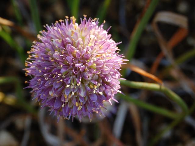 浜辣韮(ハマラッキョウ) 秋の花 2011年10月27日 浜辣韮(ハマラッキョウ)はユリ科ネギ属の多年草である。分類体系によってはネギ科とされる。発見された時期が新しいようで分布域などはっきりしないが、海浜の草地などに生える。三浦半島、伊豆半島のほか壱岐諸島などにも分布するようである。草丈は30~50センチくらいである。根際から生える葉は線形である。葉の断面は平たい。開花時期は10~12月くらいである。茎先に紅紫色の花を球状にたくさんつける。花被片は6枚あり、半開状となる。6本の雄しべと1本の雌しべが花冠から突き出す。花の後にできる実はさく果(熟すると下部が裂け、種子が散布される果実)である。属名の Allium はニンニクの古いラテン名である。種小名の litorale は「海浜に生える」という意味である。写真は12月につくば植物園で撮った。学名:Allium litorale★また一つめずらしい花咲いていた 師走と言えどここは花園花図鑑植物図鑑