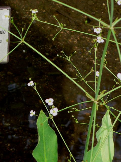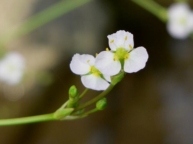 匙面高(サジオモダカ) 秋の花 2011年09月21日 匙面高(サジオモダカ)はオモダカ科サジオモダカ属の多年草である。漢字では「匙沢瀉」とも書く。北海道から本州の中部地方にかけて分布し、水田や池沼などに生える。海外では、朝鮮半島や中国の東北部にも分布する。草丈は50~80センチくらいである。根際から生える葉には長い柄があり、楕円形(さじ形)である。葉の縁にぎざぎざ(鋸歯)はない。開花時期は6~10月くらいである。雌雄同株である。花径2センチくらいの白い3弁の単性花をつける。茎の上部につくのが雄花で、下部につくのが雌花である。それぞれ3枚の花びらの真ん中に黄色い雄しべ、黄緑色の雌しべがつく。花の後にできる実はそう果(熟しても裂開せず、種子は1つで全体が種子のように見えるもの)である。塊茎を生薬で沢瀉(たくしゃ)といい、利尿剤などに用いられる。属名の Alisma はギリシャ語で「海水(alis)」からきているとの説がある。種小名の plantago-aquatica は「オオバコ属に似た水生の」という意味である。変種名の orientale は「東方の」という意味である。写真は6月につくば植物園で撮った。学名:Alisma plantago-aquatica var. orientale★面高を区別するのはむずかしい どんな葉なのか覚えていこう花図鑑植物図鑑