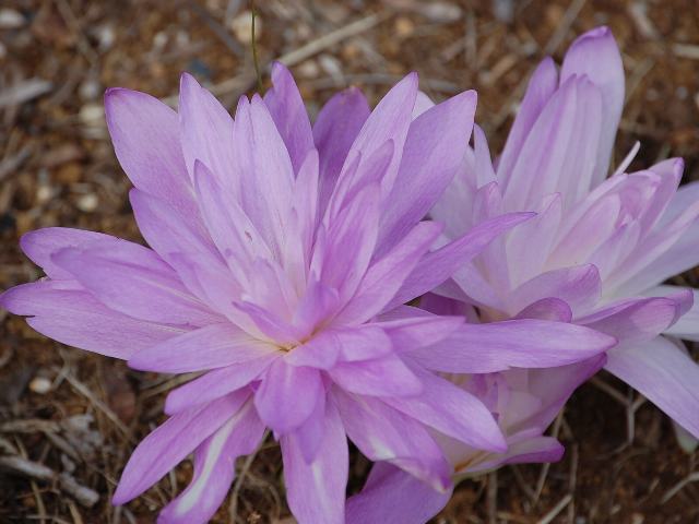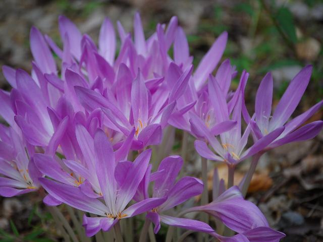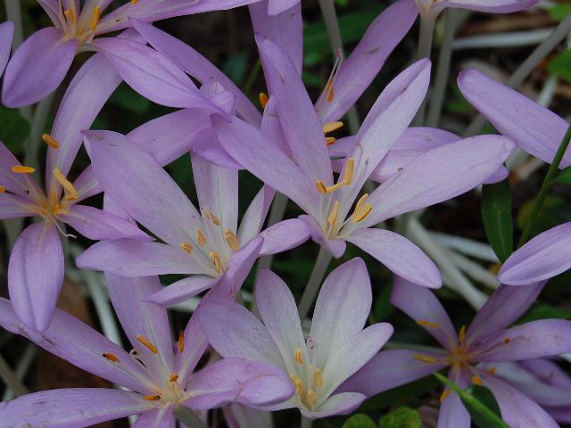 犬サフラン(イヌサフラン) 秋の花 2011年09月09日 犬サフラン(イヌサフラン)はユリ科イヌサフラン属の多年草である。分類体系によってはイヌサフラン科とされる。原産地はヨーロッパ、西アジア、北アフリカである。球根植物で、机の上に置いておくだけでも花を咲かせる。草丈は10~20センチくらいである。花の咲くころには葉はなく、翌春になって線形の葉が出てくる。開花時期は9~10月である。花の色は紅紫色、ピンク、白などである。花被片は6枚である。クロッカスやサフランに似ているが、雄しべの数や形状が異なる。犬サフラン(イヌサフラン)の雄しべは6本である。多弁化した園芸品種もある。和名の由来は、サフランに似ているが食材として役に立たないことからきている(サフランはフランス料理の食材)。一般にはコルチカム(Colchicum)の名で流通している。コルヒチンという痛風治療薬の原料となる。コルヒチンはアルカロイドで、誤食すると呼吸麻痺を起こすこともある。属名の Colchicum は自生地である黒海沿岸の地名「コルキス(Colchis)」からきている。種小名の autumnale は「秋咲きの」という意味である。写真は10月につくば植物園で撮った。学名:Colchicum autumnale★どことなく妖気を秘めて土の上 犬サフランの灯す明かりか☆食べられぬけれど効用あるのよと 犬などつけずコルチカム云い花図鑑植物図鑑