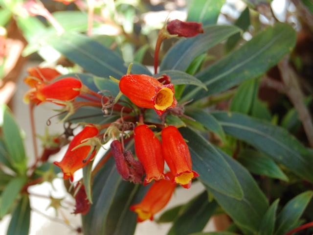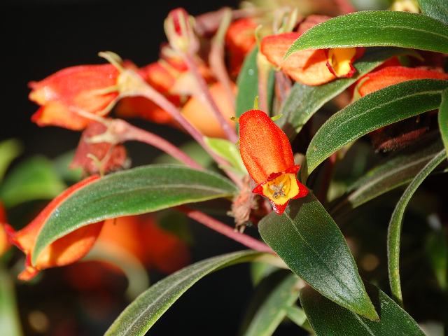 シーマニア 秋の花 2011年09月12日 シーマニア(Seemannia)はイワタバコ科グロキシニア属の多年草である。原産地は南アメリカのペルーやボリビアである。半日陰の林の中に生える。日本では秋から冬の鉢物として流通している。シーマニアはかつての属名であるが、今もこの名前で流通している。草丈は30から60センチくらいである。葉は細長い楕円形で、向かい合って生える(対生)。3枚から5枚が輪のようになって生える(輪生)こともある。葉の先は尖り、縁にぎざぎざ(鋸歯)はない。葉の両面に白い毛が生え、表面は緑色、裏面は淡い黄緑色である。開花時期は10月から1月である。茎先近くの葉の脇から柄を伸ばし、オレンジ色をした鐘状の花を1、2輪ずつつける。花冠の先は星形に5つに小さく反り返る。花の後にできる実はさく果(熟すると下部が裂け、種子が散布される果実)である。属名の Gloxinia はドイツの植物学者「グロキシン(B. P. Gloxin)さん」の名にちなむ。種小名の sylvatica は「森林に生える」という意味である。写真は2月に神奈川県立フラワーセンター大船植物園で撮った。学名:Gloxinia sylvatica★寒い時期目を楽しませるシーマニア 金魚のような姿可愛く花図鑑植物図鑑PR