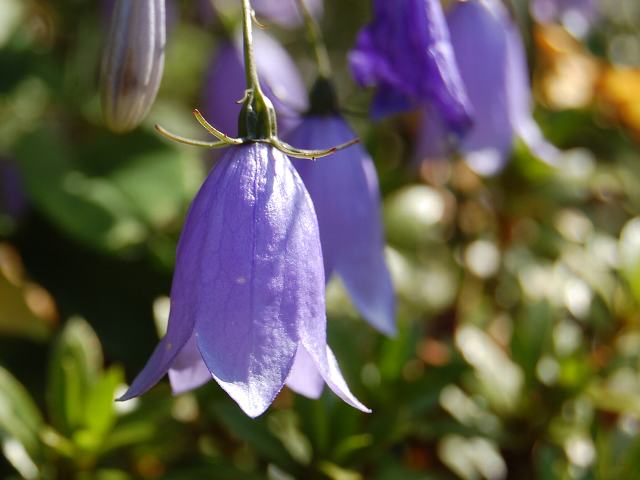 岩沙参(イワシャジン) 秋の花 2011年09月03日 岩沙参(イワシャジン)はキキョウ科ツリガネニンジン属の多年草である。日本固有種で、フォッサマグナ要素の植物である。本州の関東地方から中部地方にかけて分布し、山地の湿った岩場に生える。草丈は30~70センチくらいである。根際から生える葉は卵形である。茎につく葉は細い披針形で、互い違いに生える(互生)。葉の縁には鈍いぎざぎざ(鋸歯)がある。開花時期は9~10月である。鐘形をした紫色の花が多数垂れ下がる。花冠の先は浅く5つに裂ける。花径は15ミリから25ミリくらいである。萼片は5枚、雄しべは5本である。花の色は白いものもある。花の後にできる実はさく果(熟すると下部が裂け、種子が散布される果実)である。沙参(シャジン)というのは釣鐘人参(ツリガネニンジン)のことである。和名の由来は、岩場に生える釣鐘人参(ツリガネニンジン)の仲間というところからきている。属名の Adenophora はギリシャ語の「adenos(腺)+phoreo(有する)」からきている。植物体全体に乳液を出す腺細胞があることから名づけられた。種小名の takedae は高山植物の研究家「武田久吉さんの」という意味である。写真は10月に芦ノ湖野草園で撮った。学名:Adenophora takedae★ひっそりと俯きながら花つける 岩沙参は日本の生まれ花図鑑植物図鑑