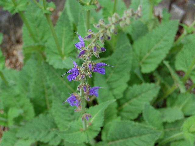 サルビア・プラテンシス 夏の花 2011年08月06日 サルビア・プラテンシスはシソ科アキギリ属の多年草である。原産地は地中海沿岸地方である。英名はメドーセージ(meadow sage)である。メドーは「草地」を意味する。日本ではグラニチカ種(Salvia guaranitica)をメドーセージとして流通させてしまったが、本来は異なる。草丈は60~100センチくらいである。葉は長い卵形で、向かい合って生える(対生)。葉の表面はざらつき、縁は波状となる。開花時期は5~8月くらいである。茎先に総状花序(柄のある花が花茎に均等につく)を出し、濃い青紫色の唇形をした花をつける。花の後にできる実は分果(複数の子房からできた果実)である。属名の Salvia はラテン語の「salvare(治療)」からきている。薬用になるものが多いことから名づけられた。種小名の pratensis は「草原に生える」という意味である。写真は5月に東京都薬用植物園で撮った。学名:Salvia pratensis★これこそが紛うことなきメドーセージ 花の蒼さを味わいながら花図鑑植物図鑑