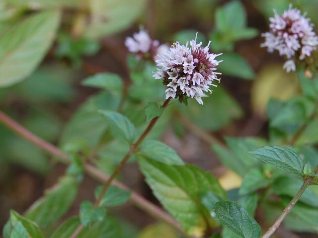 西洋薄荷(セイヨウハッカ) 夏の花 2011年08月07日 西洋薄荷(セイヨウハッカ)はシソ科ハッカ属の多年草である。英名のペパーミント(peppermint)のほうが通りがよいかもしれない。ヨーロッパ原産の帰化植物である。草丈は30~100センチくらいである。葉は楕円形ないし卵形で、向かい合って生える(対生)。葉の縁にはぎざぎざ(鋸歯)がある。開花時期は7~9月である。淡い紫色の花を穂状につけるか輪生させる。花冠は唇形で、雄しべ4本と雌しべ1本がある。花の後にできる実は分果(複数の子房からできた果実)で、4つのブロックからなる。全草にメントール(menthol)を含む。属名の Mentha はギリシャ神話に登場するニンフ「メンテ(Menthe)」の名からきている。種小名の piperita は「コショウ属のような」という意味である。写真は9月に東京都薬用植物園で撮った。学名:Mentha piperita★傍に来てペパーミントのこの香り 楽しんでねと花は囁き花図鑑植物図鑑