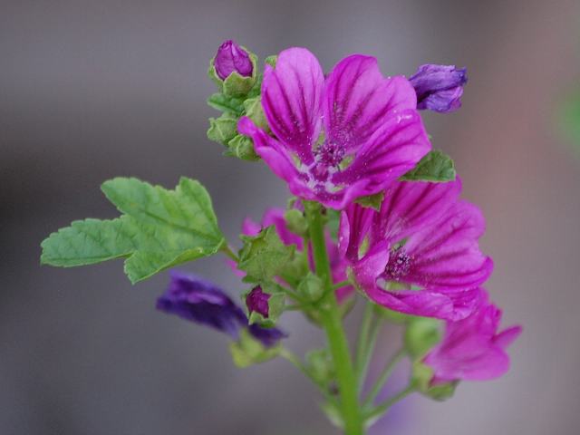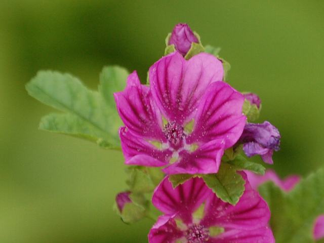 銭葵(ゼニアオイ) 夏の花 2011年06月06日 銭葵(ゼニアオイ)はアオイ科ゼニアオイ属の越年草である。原産地は南ヨーロッパ、地中海沿岸地方、西アジアである。日本へは江戸時代に観賞用として渡来した。現在では野生化し、河川敷や荒れ地などに生える。分類上は、薄紅葵(ウスベニアオイ)の変種とされている。基本種に比べると葉の切れ込みが浅く、花の色が濃い。草丈は60~120センチくらいである。葉は円形で、互い違いに生える(互生)。葉には皺があって波打ち、5つから7つくらいに浅く裂ける。葉の縁には鋭いぎざぎざ(鋸歯)がある。開花時期は6~8月くらいである。葉の脇に淡い紅紫色の5弁花をつける。花径は3センチくらいで、花弁には濃い色の縦筋が入る。花は下から上へ咲きあがる。花の後にできる実はさく果(熟すると下部が裂け、種子が散布される果実)である。和名の由来は、花の大きさを一文銭に見立てたものという。属名の Malva はラテン古名でギリシャ語の「malache(軟らかくする)」からきている。この属の植物の1種が持つ粘液に緩和剤の働きがことから名づけられた。種小名の sylvestris は「森林に生える」という意味である。変種名の mauritiana は「モーリシャス島の」という意味である。写真は6月に川口市立グリーンセンターで撮った。学名:Malva sylvestris var. mauritiana★名の由来聞けば何やら江戸の世を 思い描ける不思議感じつ花図鑑今日の花ドットコム