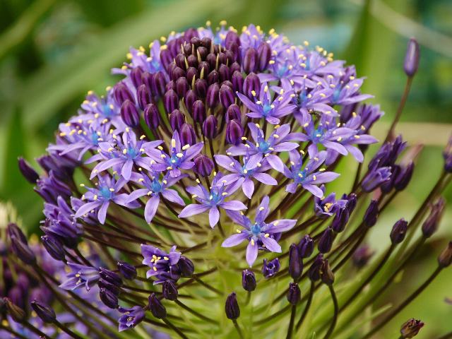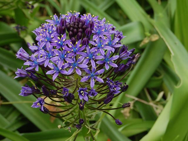 シラー・ペルビアナ 春の花 2011年05月14日 シラー・ペルビアナはユリ科ツルボ属の多年草である。和名は大蔓穂 (オオツルボ)という。 原産地は地中海沿岸地方である。日本へは明治時代の中期に観賞用として渡来した。草丈は20~50センチくらいである。根際から生える葉は幅の広い線形である。開花時期は4~6月である。茎先に円錐花序(下のほうになるほど枝分かれする回数が多く、全体をみると円錐形になる)を出し、濃い青紫色をした星形の小さな花をたくさんつける。花は下から上へと咲いていく。花被片は6枚である。花の後にできる実はさく果(熟すると下部が裂け、種子が散布される果実)である。ツルボ属は温帯地域などに100種くらい分布しているという。属名の Scilla はギリシャ語の「skyllo(有害)」からきている。 地下茎部分が有毒であることから名づけられた。種小名の peruviana は「ペルーの」という意味である。ペルー産ということではなく船の名前からきている。写真は5月に埼玉県三郷市で撮った。学名:Scilla peruviana★紫の花はいかがと手を広げ 君を手招く毒婦のように今日の花ドットコム花図鑑PR