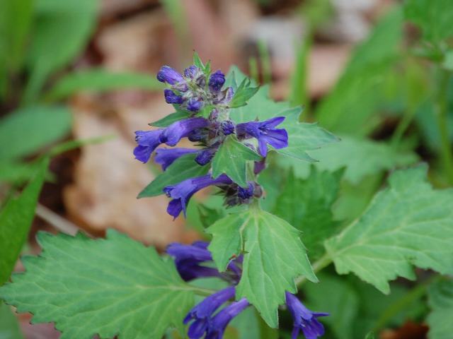 柊草(ヒイラギソウ) 春の花 2011年05月02日 柊草(ヒイラギソウ)はシソ科キランソウ属の多年草である。日本固有種である。本州の関東地方と中部地方の一部に分布し、山地のやや湿った木陰に生える。 森林伐採や盗掘によって個体数を減らしている。環境省のレッドリスト(2007)では、「IA類ほどではないが、近い将来における絶滅の危険性が高い種」である絶滅危惧IB類(EN)に登録されている。草丈は30~50センチくらいである。葉は卵形で、互い違いに生える(互生)。葉の縁には不揃いで鋭い切れ込みがある。葉の長さは5~10センチくらいあり、葉の柄は長さが3~5センチくらいある。開花時期は4~6月である。花は茎の上部の花の脇に3段から5段の段になってつく。花の色は濃い青紫色である。花は長さが2~3センチの筒形で、先は唇形に裂ける。花の後にできる実は分果(複数の子房からできた果実)で、4つのブロックからなる。和名の由来は、葉の形が柊(ヒイラギ)に似ているところからきている。近縁種に甲斐竜胆(カイジンドウ)がある。属名の Ajuga はギリシャ語の「a(無)+jugos(束縛)」からきている。花冠の形状を表したものである。種小名の incisa は「鋭く裂けた」という意味である。写真は4月に箱根湿生花園で撮った。学名:Ajuga incisa★唇の形の花に似合わない 鋭く切れ込む葉が個性的今日の花ドットコム花図鑑