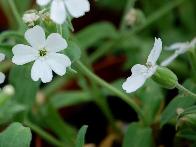 樺太びらんじ(カラフトビランジ) 春の花 2011年05月04日 樺太びらんじ(カラフトビランジ)はナデシコ科マンテマ属の多年草である。原産地は、サハリン、シベリアで、高山に生える。昭和時代の初期に山野草ブームがあったそうである。その時代に当時の樺太の専門業者が内地に出荷したものが受け継がれているという。草丈は10~20センチくらいである。葉は披針形で、向かい合って生える(対生)。開花時期は5~6月である。花の色は白く、花びらは5枚でつけ根の部分に萼筒がある。花の後にできる実はさく果(熟すると下部が裂け、種子が散布される果実)である。属名の Silene はギリシャ神話の「シレネス(Silenes、バッカスの養父)」からきている。この属には粘液性の分泌液を出すものが多いので、これを酔って泡だらけになった様子にたとえた。種小名の sachalinensis は「サハリンの」という意味である。写真は4月に神奈川県立フラワーセンター大船植物園で撮った。学名:Silene sachalinensis★わからないどことつながるこの名前 山野草には謎が多くて今日の花ドットコム花図鑑PR