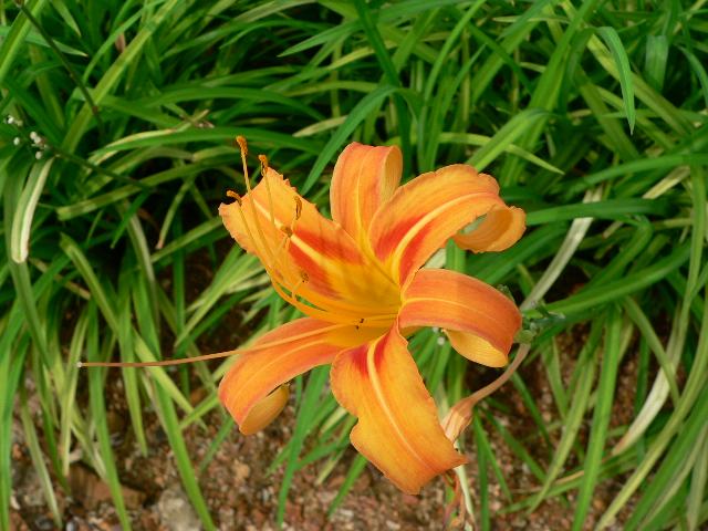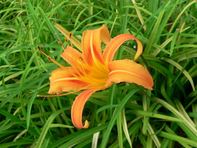 秋の忘れ草(アキノワスレグサ) 秋の花 2010年11月24日 秋の忘れ草(アキノワスレグサ)はユリ科ワスレグサ属(キスゲ属)の常緑多年草である。本州の近畿地方南部から沖縄にかけて分布する。海外では、台湾、中国にも分布する。別名を常葉萱草(トキワカンゾウ)という。沖縄方言では「クワンソー」という。分類上は、野萱草(ノカンゾウ)の変種とされる。草丈は60センチから80センチくらいである。葉は線形で根際から生える。開花時期は10月から11月である。茎先に花被片6枚の黄橙色をした漏斗状の花をつける。花は一日花である。根茎は薬用とされる。不眠症や食欲不振などに効くという。また、花の蕾や葉、根などは、お浸しや味噌汁などに利用される。写真は11月に沖縄県本部町の熱帯・亜熱帯都市緑化植物園で撮った。学名:Hemerocallis fulva var. sempervirens(=Hemerocallis sempervirens)★南国に咲く忘れ草めずらしく じっと見つめる違いはどこと今日の花ドットコム花図鑑