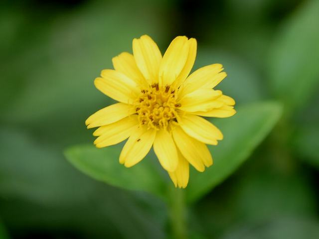 熊野菊(クマノギク) 秋の花 2010年10月19日 熊野菊(クマノギク)はキク科ハマグルマ属の多年草である。別名を浜車(ハマグルマ)ともいう。本州の伊豆半島から沖縄にかけて分布し、海岸近くのやや湿った場所に生える。草丈は20センチから50センチくらいである。茎は地面を這って広がり、節から根を出す。葉は長い楕円形ないし披針形で、向かい合って生える(対生)。葉の先は尖り、縁には低いぎざぎざ(鋸歯)がある。葉の質は紙質で、ざらつく。開花時期は5月から10月である。茎先に黄色い花(頭花)を1輪ずつつける。花径は20ミリから25ミリくらいで、筒状花も舌状花も黄色い。舌状花は7枚から10枚くらいで、先がへこんでいる。和名の由来は、和歌山県の熊野地方で発見されたことからきている。写真は9月に小石川植物園で撮った。学名:Wedelia chinensis★独特の花の姿の熊野菊 地に葉を広げぽつぽつ咲いて今日の花ドットコム花図鑑