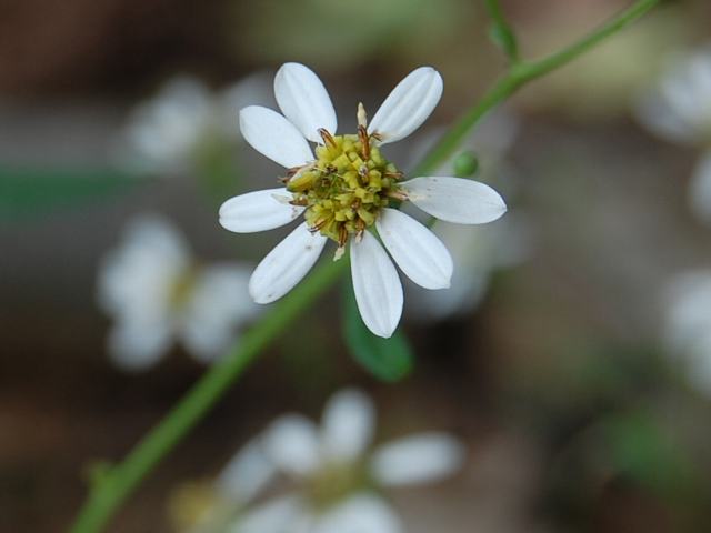 渋川白菊(シブカワシロギク) 秋の花 2010年10月14日 渋川白菊(シブカワシロギク)はキク科シオン属の多年草である。愛知県と静岡県に分布し、蛇紋岩地に稀に生える。分類上は、沢白菊(サワシロギク)の変種とされている。「渋川」というのは静岡県引佐町の渋川温泉のあるあたりの地名で、周辺には岩が露出し植物が生育しにくい蛇紋岩地域がある。環境省のレッドリスト(2007)では、「IA類ほどではないが、近い将来における絶滅の危険性が高い種」である絶滅危惧IB類(EN)に登録されている。草丈は30センチから60センチくらいである。葉は披針形で艶があり、互い違いに生える(互生)。基本種と違って開花時期にも根生葉が残る。開花時期は8月から10月くらいである。舌状花ははじめは白く、後に淡い紅色を帯びる。花径は3センチくらいである。写真は10月につくば植物園で撮った。学名:Aster rugulosus var. shibukawaensis★渋川と言えばもちろん蛇紋岩 変わった草木を育む地形今日の花ドットコム花図鑑