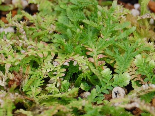 檜葉苔(ヒバゴケ) 観葉植物 2015年08月04日 檜葉苔(ヒバゴケ)はイワヒバ科イワヒバ属(セラギネラ属)の多年草である。セラギネラ属は世界に700種くらいが分布する。日本にも岩檜葉(イワヒバ)などが分布し、属名の和名をイワヒバ属という。本種は、日本では小笠原諸島のみに分布する。海外では、台湾、フィリピンにも分布する。山地の林の中や林の縁、樹木の幹などに生えるシダ植物である。別名を無人鞍馬苔(ムニンクラマゴケ)ともいう。茎は地上を匍匐して伸び、疎らに枝分かれをする。ところどころに長い楕円形をした小さな葉(側枝)を密につける。和名の由来は、側枝の形状が檜(ヒノキ)に似ていること、「苔」のように見えることからきている。属名の Selaginella はヒカゲノカズラの古名「Selago」の縮小形である。種小名の boninensis は「無人島の(小笠原の)」という意味である。写真は7月に小石川植物園で撮った。学名:Selaginella boninensis★その違いどこにあるやら分からぬが 独自の進化ここにも一つ 花図鑑植物図鑑|味の麺匠戸田久|おこめの鬼平|フロム蔵王|花の本屋さん|楽天トラベル|