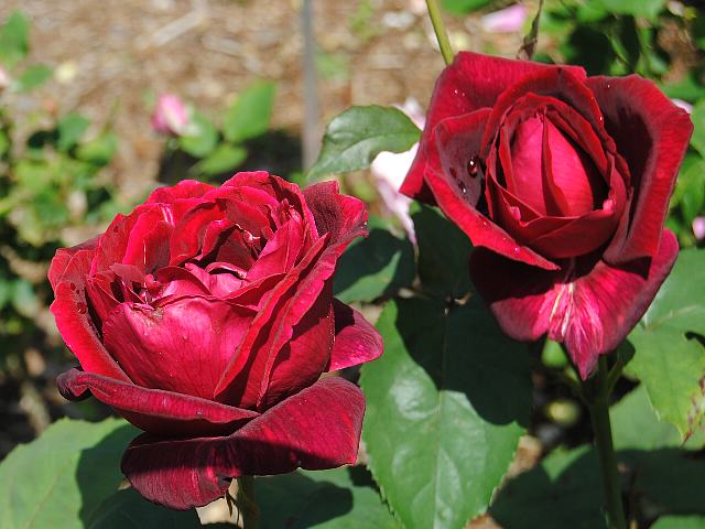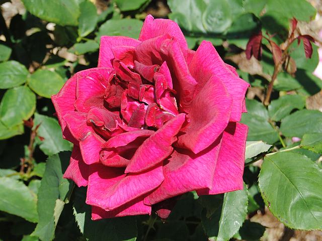 パパ・メイアン 夏の花 2015年05月26日 パパ・メイアン(Papa Meilland)はバラ科バラ属の落葉低木である。1963年にフランスのアラン・メイアン(Alain Meilland)によって作出された園芸品種である。ハイブリッドティ系(Hybrid Tea:HT)と呼ばれるものの1つで、四季咲きの大輪である。黒薔薇と呼ばれる暗い紅色をした薔薇の代表的品種である。1988年に世界ばら会連合(World Federation of Rose Societies)の殿堂入り品種に選ばれている。樹高は150センチから180センチくらいである。樹形は半直立性である。開花時期は5月から11月である。半剣弁高芯咲きの八重で、花の色はビロードのような暗い紅色である。花弁数は25枚から30枚くらいで、花径は15センチくらいである。花にはダマスク系の強い香りがある。属名の Rosa はケルト語の「rhodd(赤色)」からきている。園芸品種名の Papa Meilland は作出者の祖父にあたる「アントワーヌ・メイアン(Antoine Meilland, 1884-1971)」の愛称である。写真は5月につくば植物園で撮った。学名:Rosa 'Papa Meilland'★滑らかな生地と香りに歩み止め 二人味わう至福の時間薔薇図鑑花図鑑植物図鑑|味の麺匠戸田久|おこめの鬼平|フロム蔵王|花の本屋さん|楽天トラベル|