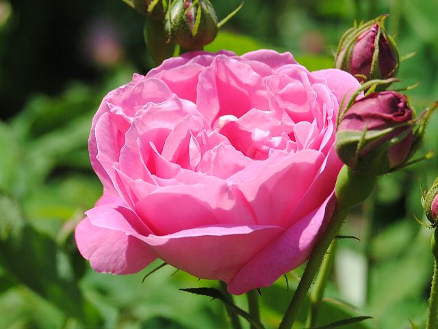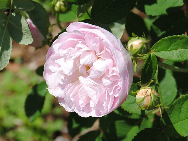 プロリフェラ・ド・ルドウテ 夏の花 2015年06月01日 プロリフェラ・ド・ルドウテはバラ科バラ属の落葉低木である。オールドローズ(Old Rose:O)のケンティフォリア系(Centifolia:C)と呼ばれるものの1つで、一季咲きの中輪である。ケンティフォリア系というのはロサ・ケンティフォリア(Rosa x centifolia)が交配にかかわっている品種群で、ダマスク系と並ぶ香料バラである。本種は作者は不祥だが1824年以前にフランスで作出された。プロリフェラ(Prolifera)には「突起のある」とか「零余子(むかご)で増える」といった意味がある。ルドウテ(Redoute)は「バラの画家」として知られるベルギーの植物学者(Pierre-Joseph Redoute, 1759-1840)の名からきている。樹高は200センチから250センチくらいである。樹形はつる性である。開花時期は5月から6月である。花径10センチから11センチくらいのロゼット咲きの八重である。花の色はピンクである。花弁数は80枚くらいである。花には強い香がある。属名の Rosa はケルト語の「rhodd(赤色)」からきている。写真は5月につくば植物園で撮った。学名:Rosa 'Prolifera de Redoute'★いろいろな謂れを秘めて花開く オールドローズは歴史そのもの薔薇図鑑花図鑑植物図鑑|味の麺匠戸田久|おこめの鬼平|フロム蔵王|花の本屋さん|楽天トラベル|