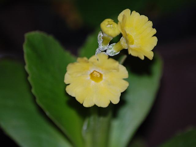 プリムラ・アウリクラ 春の花 2015年04月13日 プリムラ・アウリクラはサクラソウ科サクラソウ属(プリムラ属)の多年草である。読み方はプリムラ・オーリキュラとするものもある。プリムラ属は北半球の温帯や寒帯に500種くらいが分布する。また、多くの園芸品種が作出されている。日本にも桜草(サクラソウ)などが分布するので、属名の和名をサクラソウ属という。本種の原産地はヨーロッパである。アルプス山脈、バルカン半島、アベニン山脈、カルパチア山脈などに分布し、標高300メートルから2900メートルの草地や岩場に生える。英名はマウンテンカウスリップ(mountain cowslip)という。カウスリップ(cowslip)は牧場によく生えることからつけられた名で、黄花の九輪桜(キバナノクリンザクラ)が英名でこう呼ばれている。また、別名をベアーズイヤー(bear's ear)という。これは耳に似た葉の形からつけられた名である。草丈は5センチから20センチくらいである。根際から生える葉は倒卵形で、ロゼット状となる。葉は白い粉に被われる。開花時期は3月から4月である。茎先に散形花序(たくさん枝が出て、先に1個つずつ花がつく)を出し、黄色い花をつける。花の後にできる実はさく果(熟すると下部が裂け、種子が散布される果実)である。属名の Primula はラテン語の「primos(最初)」縮小形である。プリムラ・ベリスが早春に他の花に先駆けて咲くことから名づけられた。種小名の auricula は「耳形の」という意味である。写真は4月につくば植物園で撮った。学名:Primula auricula ★数々の園芸品種生み出した 花は静かな輝き見せて桜草・プリムラ図鑑花図鑑植物図鑑|味の麺匠戸田久|おこめの鬼平|フロム蔵王|花の本屋さん|楽天トラベル|