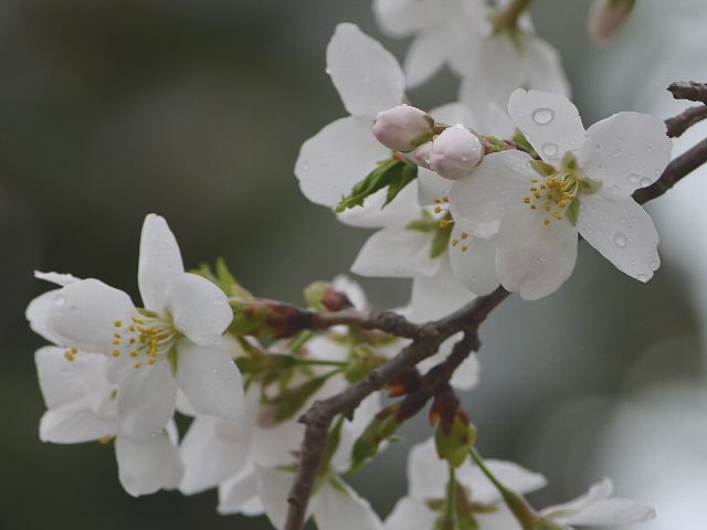 修善寺桜(シュゼンジザクラ) 春の花 2015年04月15日 修善寺桜(シュゼンジザクラ)はバラ科サクラ属の落葉高木である。国立遺伝学研究所の竹中要博士によって染井吉野(ソメイヨシノ)の起源を研究するする過程で生まれた桜である。小石川植物園にあった江戸彼岸(エドヒガン)から採取した種子を育成し、1957年に名づけられた。染井吉野(ソメイヨシノ)は、大島桜(オオシマザクラ)と江戸彼岸(エドヒガン)の自然交配によって生まれたと考えられている。その実験の過程で誕生したのがこの桜で、国立遺伝学研究所に保存されている。原木は大島桜(オオシマザクラ)が交雑したものと考えられている。樹高は5メートルから15メートルくらいである。樹形は小形で、枝は細く、やや垂れ下がる。葉は楕円形で、互い違いに生える(互生)。葉の先は尖り、縁には芒(のぎ:イネなどの小穂に見られる針のような棘)状のぎざぎざ(鋸歯)がある。これは大島桜(オオシマザクラ)の影響と考えられる。開花時期は4月の上旬から中旬である。花は花径25ミリから35ミリの中輪で、一重咲きである。花弁数は5枚で、花びらの形は楕円形である。花の色は白い。萼筒に毛があり、ややくびれがある点から江戸彼岸(エドヒガン)の特徴であるが、筒状であるのは大島桜(オオシマザクラ)の影響であり、分類については今後の課題とされている。属名の Prunus は「plum(スモモ)」を意味する。種小名の pendula は「下垂の」という意味である。写真は4月に三島市の国立遺伝学研究所で撮った。学名:Prunus x pendula 'Syuzenzi-zakura'(syn. Prunus x yedoensis 'Syuzenzi-zakura')★修善寺の名前はどこからきたのかな 染井彼岸とどうして違うの桜図鑑花図鑑植物図鑑|味の麺匠戸田久|おこめの鬼平|フロム蔵王|花の本屋さん|楽天トラベル|