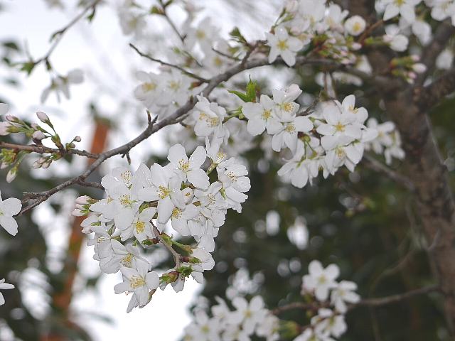 早咲大島(ハヤザキオオシマ) 春の花 2015年04月06日 早咲大島(ハヤザキオオシマ)はバラ科サクラ属の落葉高木である。国立遺伝学研究所の竹中要博士が染井吉野(ソメイヨシノ)と大島桜(オオシマザクラ)を交配させて1957年に作出した。開花時期が染井吉野(ソメイヨシノ)よりも早い。樹高は5メートルから15メートルくらいである。葉は楕円形で、互い違いに生える(互生)。葉の縁には重鋸歯(大きなぎざぎざに更に細かなぎざぎざがある)がある。開花時期は3月上旬から4月上旬である。葉の展開と同時に花を咲かせる。花は花径3センチから5センチの大輪で、一重咲きである。花びらの形は楕円形から円形である。花の色は白い。咲き進むにつれて花の真ん中が赤味を帯びる。花にはかすかに香りがある。属名の Prunus はラテン語の「plum(スモモ)」からきている。種小名の yedoensis は「江戸の」という意味である。写真は4月に三島市の国立遺伝学研究所で撮った。学名:Prunus x yedoensis 'Hayazaki-Oshima' ★早咲きも個性のひとつと言えるけど 括ってみれば大島桜桜図鑑花図鑑植物図鑑|味の麺匠戸田久|おこめの鬼平|フロム蔵王|花の本屋さん|楽天トラベル|