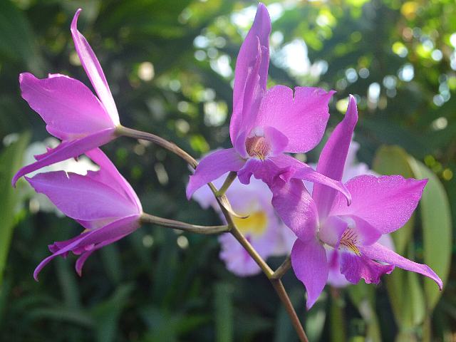 レリア・ゴウルディアナ 冬の花 2015年02月15日 レリア・ゴウルディアナはラン科レリア属の多年草である。属名の読み方はラエリアとするものもある。レリア属はメキシコからブラジルにかけて50種ほどが分布し、樹木や岩肌にへばりつく着生種ないし岩生種である。カトレア属に非常に近い仲間である(ブラジル原産のものは2009年からカトレア属に統合された)。また、属間交雑により多くの園芸品種が生み出されている。本種の原産地はメキシコ南部のイダルゴ州(Hidalgo)である。標高1500メートルくらいの山地に生える。草丈は60から90センチくらいである。葉は肉厚の披針形(笹の葉のような形)である。開花時期は11月から1月である。花茎を伸ばし10輪くらいの花をつける。花の色は濃い紅紫色である。唇弁には濃い紫色や黄色の模様が入る。花径は8センチくらいあり、よい香りがする。属名の Laelia は古代ローマの女神の名からきている。種小名の gouldiana はアメリカの資本家「グールド(Gould, 1800's)さんの」という意味である。写真は12月に新宿御苑で撮った。学名:Laelia gouldiana★鮮やかな紅に思わず身も踊る ゴウルディアナは華やぎ咲いて花図鑑植物図鑑|味の麺匠戸田久|おこめの鬼平|フロム蔵王|花の本屋さん|楽天トラベル|