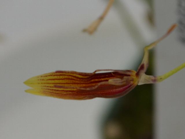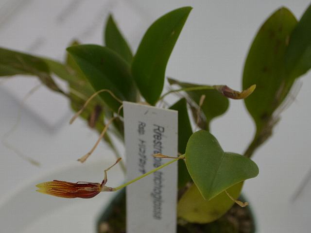 レストレピア・トリコグロッサ 秋の花 2015年02月09日 レストレピア・トリコグロッサはラン科レストレピア属の常緑多年草である。レストレピア属はメキシコから南アメリカにかけて30種から40種が分布する。本種はメキシコ、パナマ、コロンビア、ペルー、エクアドルなどに分布し、標高300メートルから3200メートルの雲霧林に生える着生種である。国際自然保護連合(IUCN)のレッドリスト(Ver. 3.1, 2013)では軽度懸念(LC)に指定されている。草丈は5センチから10センチくらいである。葉は楕円形である。開花時期は夏から秋である。花の色は黄色で、暗い紅色のストライブが入る。花径は3センチくらいである。属名の Restrepia はコロンビアの歴史家で植物学者の「レストレポ(Jose Manuel Restrepo, 1781-1863)さん」の名からきている。種小名の trichoglossa は「糸状の唇弁の」という意味である。写真は12月に夢の島熱帯植物館で撮った。学名:Restrepia trichoglossa ★小さくて裸眼じゃとても見切れない 不思議を秘めたランに出合って花図鑑植物図鑑|味の麺匠戸田久|おこめの鬼平|フロム蔵王|花の本屋さん|楽天トラベル|