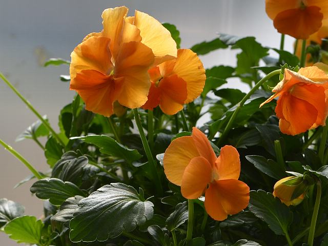 ナチュレ・トゥルーオレンジ 冬の花 2015年01月05日 パンジーはスミレ科スミレ属の園芸品種の総称である。園芸品種の数は数千とも言われ、膨大である。ナチュレ・トゥルーオレンジはそうした仲間の1つである。タキイ種苗から発売されているF1ナチュレ系に属する。F1は First Filial Hybrid の略称で、交配された(Hybrid)雑種の(Filial)一代目(First)のことである。優れた性質を持つ個体を掛け合わせ、両方の良い部分を受け継いだ次世代を意味する。本種は、花径は小さいが寒い冬でもよく咲くのが特徴である。ウインターパンジーという名称も用いられている。パンジーとビオラのよい部分を併せもつと宣伝しており、ビオラのように多花性がある。なお、日本ではパンジーの小輪多花性の品種をビオラと呼んでいるが、両者の区別は曖昧である。草丈は10~20センチくらいである。葉は楕円形で、互い違いに生える(互生)。開花時期は11~5月くらいである。花径は4センチくらいである。一重咲きで花弁数は5枚である。花の色は濃いオレンジ色で、高温期にも花の色が淡くなりすぎることはないとしている。属名の Viola はラテン語の「viola(菫)」からきている。種小名の wittrockkiana はスウェーデン人の植物学者「ウィットロック(Veit Brecher Wittrock, 1839-1914)さんの」という意味である。写真は12月に神奈川県立フラワーセンター大船植物園で撮った。学名:Viora x wittrockkiana★濃い色のオレンジ色のパンジーは いろんな色と似合いそうだね花図鑑植物図鑑|味の麺匠戸田久|おこめの鬼平|フロム蔵王|花の本屋さん|楽天トラベル|