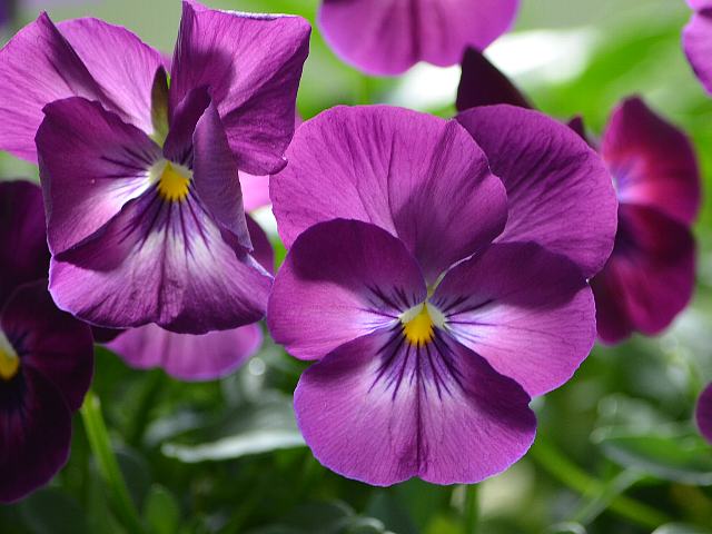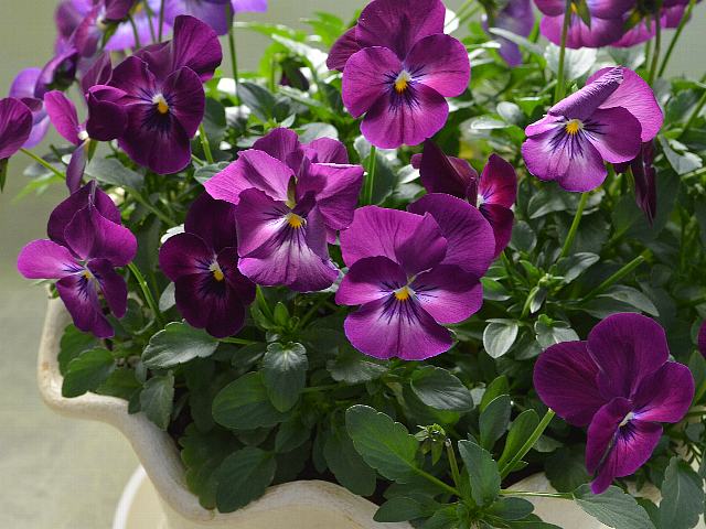 よく咲くスミレ・カシス 冬の花 2015年01月07日 パンジーはスミレ科スミレ属の園芸品種の総称である。園芸品種の数は数千とも言われ、膨大である。よく咲くスミレ・カシスはそうした仲間の1つである。サカタのタネから発売されている「よく咲くスミレシリーズ」に属する。パンジーの華やかさとビオラの強さ、多花性を併せ持つと宣伝するシリーズで、連続開花性がある。草丈は10~30センチくらいである。葉は楕円形で、互い違いに生える(互生)。開花時期は11~5月くらいである。花径は4センチくらいである。花の色は赤紫色で、花の真ん中が白く抜ける。カシスというのは黒酸塊(クロスグリ)のことだが、本種の場合はそれよりも紅色が強い。現状で12種類ある色の1つである。花弁数は5枚である。属名の Viola はラテン語の「viola(菫)」からきている。種小名の wittrockkiana はスウェーデン人の植物学者「ウィットロック(Veit Brecher Wittrock, 1839-1914)さんの」という意味である。写真は12月に神奈川県立フラワーセンター大船植物園で撮った。学名:Viora x wittrockkiana★品のよい色はカクテル思わせる 菫色なら花は大輪花図鑑植物図鑑|味の麺匠戸田久|おこめの鬼平|フロム蔵王|花の本屋さん|楽天トラベル|