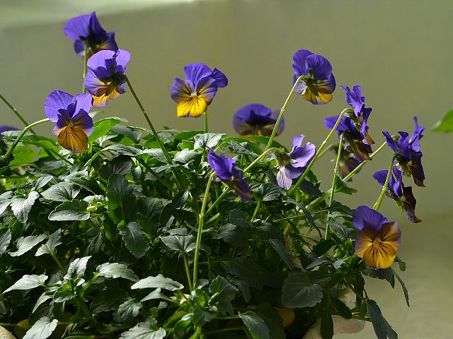 ソルベXP・モルフォ 冬の花 2015年01月16日 ビオラはスミレ科スミレ属の園芸品種の総称である。ビオラという名は、もともとはスミレ属の属名からきている。園芸的には、日本ではパンジーの小輪多花性のものをビオラと呼んでいる。しかし、両者の区別は曖昧で、学名的にも区別されない。そのため、パンジー・ビオラとして並列に扱われることも多い。園芸品種の数は数千とも言われ、膨大である。本来は多年草だが、日本では一年草として扱われる。ソルベXP・モルフォはそうした仲間の1つである。タキイ種苗から発売されているF1ソルベXP系属し、アメリカで開発された。F1は First Filial Hybrid の略称で、交配された(Hybrid)雑種の(Filial)一代目(First)のことである。優れた性質を持つ個体を掛け合わせ、両方の良い部分を受け継いだ次世代を意味する。ソルベ(Sorbet)にはシャーベットの意味がある。もともとソルベというシリーズがあり、ソルベXPはその進化版である。モルフォ(Morpho)というのはアメリカに分布するモルフォ蝶(モルフォチョウ:Morpho)の属名からきている。花の姿をたとえたものである。草丈は15~30センチくらいである。葉は楕円形で、互い違いに生える(互生)。開花時期は11~5月くらいである。花径は3センチくらいである。花弁数は5枚である。花の色は上弁が青色、下弁は黄色で蝶の翅のような模様が入る。小輪系だが開花時期が早く、花つきもよい。属名の Viola はラテン語の「viola(菫)」からきている。種小名の wittrockkiana はスウェーデン人の植物学者「ウィットロック(Veit Brecher Wittrock, 1839-1914)さんの」という意味である。写真は12月に神奈川県立フラワーセンター大船植物園で撮った。学名:Viora x wittrockkiana★調べればいろんなことが見えてくる 小さいけれど蝶舞うごとく花図鑑植物図鑑|味の麺匠戸田久|おこめの鬼平|フロム蔵王|花の本屋さん|楽天トラベル|