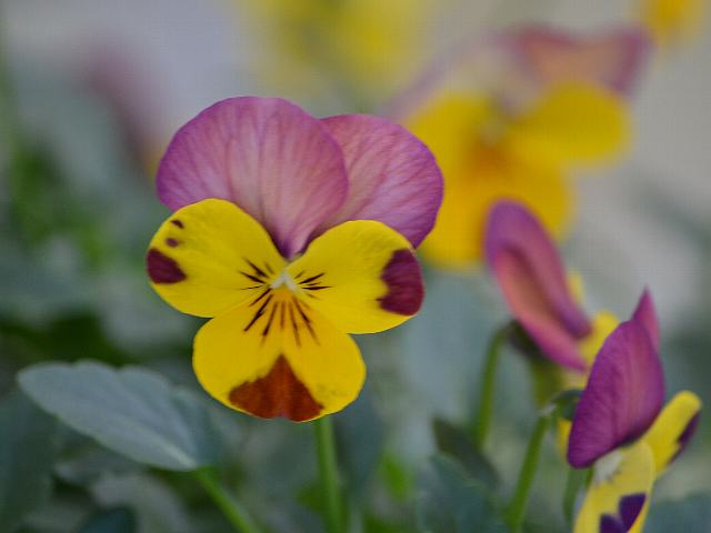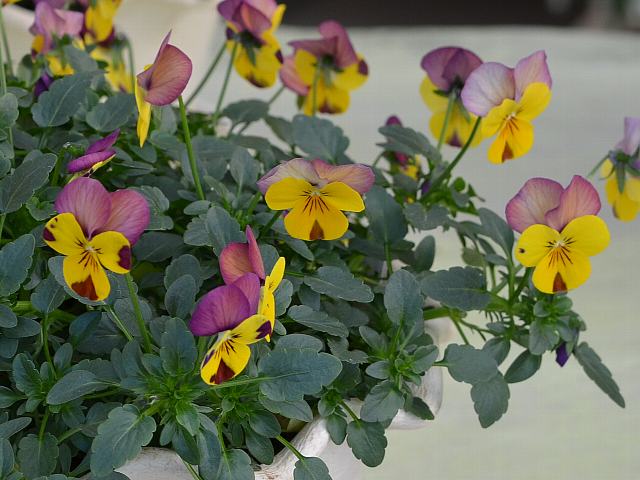 ソルベ・ピーチメルバ 冬の花 2015年01月19日 ビオラはスミレ科スミレ属の園芸品種の総称である。ビオラという名は、もともとはスミレ属の属名からきている。園芸的には、日本ではパンジーの小輪多花性のものをビオラと呼んでいる。しかし、両者の区別は曖昧で、学名的にも区別されない。そのため、パンジー・ビオラとして並列に扱われることも多い。園芸品種の数は数千とも言われ、膨大である。本来は多年草だが、日本では一年草として扱われる。ソルベ・ピーチメルバはそうした仲間の1つである。アメリカのボール・ホーティカルチュラル・カンパニー(Ball Horticultural Company)によって開発されたF1ソルベ系に属する。F1は First Filial Hybrid の略称で、交配された(Hybrid)雑種の(Filial)一代目(First)のことである。優れた性質を持つ個体を掛け合わせ、両方の良い部分を受け継いだ次世代を意味する。ソルベ(Sorbet)にはシャーベットの意味がある。ピーチメルバ(Peach Melba)というのはイギリスでオーギュスト・エスコフィエによって作成されたデザートのことで、歌手のネリー・メルバのための特製デザートとして考案された。バニラ・アイスの下地にシロップ漬けの桃を乗せ、ラズベリー・ソースとアーモンドのスライスをかけてある。花の姿をこれにたとえたものである。草丈は15~20センチくらいである。葉は楕円形で、互い違いに生える(互生)。開花時期は11~5月くらいである。花径は3センチくらいである。花弁数は5枚である。花の色は上弁がピンク、下弁は黄色で、下弁の下部の縁には赤い斑点がが入る。花の色の濃淡や模様の入り方には個体差がある。小輪系だが開花時期が早く、花つきもよい。属名の Viola はラテン語の「viola(菫)」からきている。種小名の wittrockkiana はスウェーデン人の植物学者「ウィットロック(Veit Brecher Wittrock, 1839-1914)さんの」という意味である。写真は12月に神奈川県立フラワーセンター大船植物園で撮った。学名:Viora x wittrockkiana★花びらは小さいけれど複雑な 模様はどこか大人びて見え花図鑑植物図鑑|味の麺匠戸田久|おこめの鬼平|フロム蔵王|花の本屋さん|楽天トラベル|PR