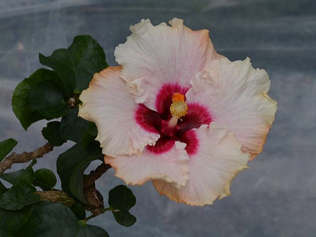 ガスト20 四季咲きの花 2014年08月19日 ハイビスカスはアオイ科フヨウ属の植物の総称である。多くの園芸品種が生まれているが、主にオールド系、ハワイアン系、コーラル系の3系統に分類されている。ガスト20(Gast20)は、ハワイアン系に属する。ハワイアン系はハワイで交配された大輪種で、鑑賞価値が高く数も多い。樹高は1メートルから2メートルである。葉は楕円形で、互い違いに生える(互生)。葉の先は尖り、縁には粗いぎざぎざ(鋸歯)がある。開花時期は周年である。一重咲きの大輪である。花の色は明るい紅紫色で、表面には淡い色のストライブが入り、縁は波打つ。花冠はほぼ円形で、深く5つに裂けて重なり合う。花柱は淡い紅色で、柱頭も赤い。属名の Hibiscus はギリシャ語由来で「Hibis(エジプトの女神)」の名からきているとの説があり、大形のゼニアオイ属につけられた名である。写真は4月に大阪市の咲くやこの花館で撮った。学名:Hibiscus 'Gast20'★ふさふさと重なる花びら立体的 一重だけども八重咲きのよう花図鑑植物図鑑|味の麺匠戸田久|おこめの鬼平|フロム蔵王|花の本屋さん|楽天トラベル|