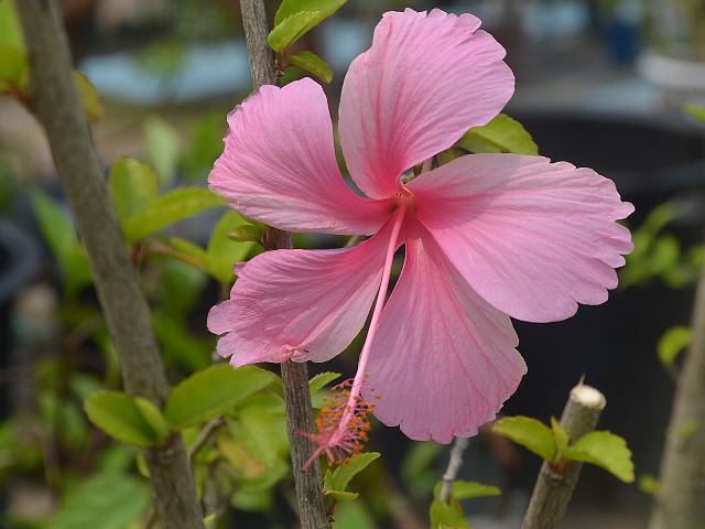ピンク・バタフライ 四季咲きの花 2014年08月10日 ハイビスカスはアオイ科フヨウ属の植物の総称である。多くの園芸品種が生まれているが、主に3系統に分類されている。ピンク・バタフライ(Pink Butterfly)もその1つで、コーラル系に属する。風鈴仏桑花(フウリンブッソウゲ:Hibiscus schizopetalus)が交配親となっているグループである。花の様子は赤花の仏桑花(ブッソウゲ:Hibiscus rosa-sinensis)とよく似ている。別名はコーラルピンク(Coral Pink)という。別名のものを既に沖縄で撮っていたが札幌で撮ったので改めて掲載する。樹高は1メートルから2メートルである。葉は楕円形で互い違いに生える(互生)。手のひら状に裂けるものもあり、葉の縁には粗いぎざぎざ(鋸歯)がある。開花時期は周年である。花径は10センチくらいで、花の色はピンクである。花弁には切れ込みが入る。筒状に合着した雄しべはピンクで、柱頭もピンクである。属名の Hibiscus はギリシャ語由来で「Hibis(エジプトの女神)」の名からきているとの説があり、大形のゼニアオイ属につけられた名である。写真は7月に北大植物園で撮った。学名:Hibiscus 'Pink Butterfly'★北国の夏に出合ったハイビスカス 調べてみれば別名なのか花図鑑植物図鑑|味の麺匠戸田久|おこめの鬼平|フロム蔵王|花の本屋さん|楽天トラベル|