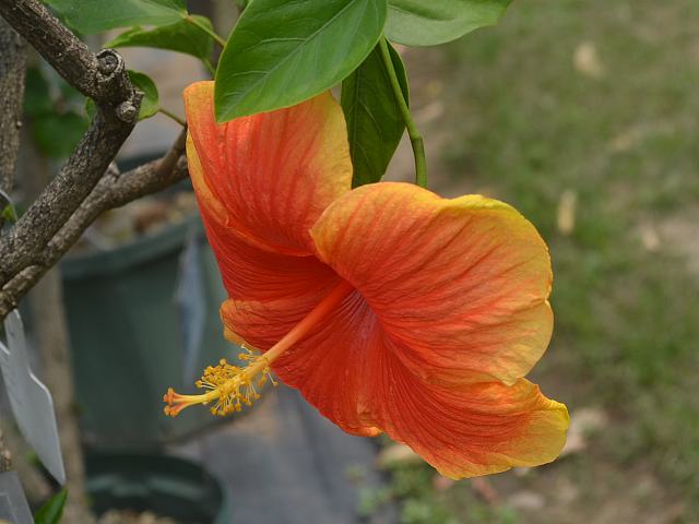 レッドアイ 四季咲きの花 2014年08月11日 ハイビスカスはアオイ科フヨウ属の植物の総称である。多くの園芸品種が生まれているが、主にオールド系、ハワイアン系、コーラル系の3系統に分類されている。レッドアイ(Red Ai)は、オールド系に属する。仏桑花(ブッソウゲ:Hibiscus rosa-sinensis)やヨーロピアン系と呼ばれるものなどがこの系統に属する。樹高は1メートルから2メートルである。葉は楕円形で、互い違いに生える(互生)。葉の先は尖り、縁には粗いぎざぎざ(鋸歯)がある。開花時期は周年である。花の色は朱赤色で、縁取りは黄色い。花冠はほぼ円形で、深く5つに裂けて反り返る。花柱は根元が朱赤色、先が黄色である。柱頭は朱赤色である。属名の Hibiscus はギリシャ語由来で「Hibis(エジプトの女神)」の名からきているとの説があり、大形のゼニアオイ属につけられた名である。写真は7月に北大植物園で撮った。学名:Hibiscus 'Red Ai'★反り返る花弁の先の黄色さが イメージ変える色のマジック花図鑑植物図鑑|味の麺匠戸田久|おこめの鬼平|フロム蔵王|花の本屋さん|楽天トラベル|