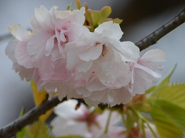 蘭蘭(ランラン) 春の花 2014年04月26日 蘭蘭(ランラン)はバラ科サクラ属の落葉高木である。サトザクラの仲間の1つである。北海道松前町で浅利政俊さんによって作出された。松前固有種の白蘭(ハクラン)に雨宿(アマヤドリ)を交配して育成された品種である。名はパンダ蘭蘭の死を悼んで昭和55年の子どもの日に松前の子どもたちによって命名された。樹高5メートルから10メートルくらいである。樹形は傘状である。葉は楕円形で、互い違いに生える(互生)。葉の先は尖り、縁には芒(のぎ:イネなどの小穂に見られる針のような棘)状のぎざぎざ(鋸歯)がある。開花時期は4月の下旬である。葉の展開と同時に花をつける。花径が4、5センチくらいある八重咲きの大輪である。花の色は白く、花びらの外側にごく淡い桃色が残る。花びらの数は15枚から20枚である。結実はしない。属名の Prunus は「plum(スモモ)」を意味する。種小名の lannesiana はフランス人の園芸家「ランヌ(Lannes)さんの」という意味である。写真は4月に富山県中央植物園で撮った。学名:Prunus lannesiana 'Ranran'★桜にはそぐわぬ名だと思えども 由来を聞けば笑みも浮かんで花図鑑植物図鑑|味の麺匠戸田久|おこめの鬼平|フロム蔵王|花の本屋さん|楽天トラベル|
