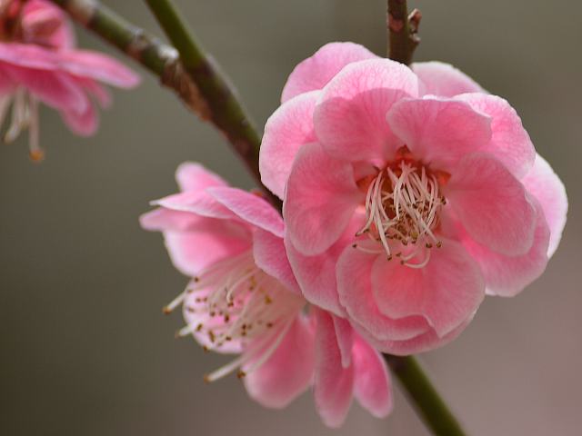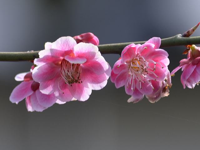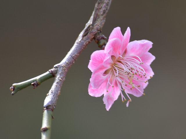 柳川枝垂(ヤナガワシダレ) 春の花 2014年03月29日 梅(ウメ)はバラ科サクラ属の落葉小高木である。中国原産で、日本へは古代に渡来した。柳川枝垂(ヤナガワシダレ)はその栽培品種の1つである。樹高は3メートルから6メートルくらいである。葉は楕円形で、互い違いに生える(互生)。開花時期は2月から3月である。葉の展開に先立って花を咲かせる。野梅系・野梅性の淡い桃色の一重咲きの中輪(花径20から25ミリ)である。蕾は濃い紅色の萼に包まれているが、開花すると萼は反り返り淡い桃色の花弁が現れる。水戸の6名木の1つとされている。属名の Prunus は「plum(スモモ)」を意味する。種小名の mume は「梅」のことである。写真は3月に水戸市の旧弘道館で撮った。学名:Prunus mume 'Yanagawashidare'★さっぱりと咲いた姿は自然だね 派手ではないが水戸の好みか花図鑑植物図鑑|味の麺匠戸田久|おこめの鬼平|フロム蔵王|花の本屋さん|楽天トラベル|