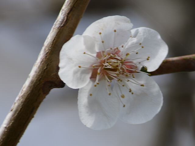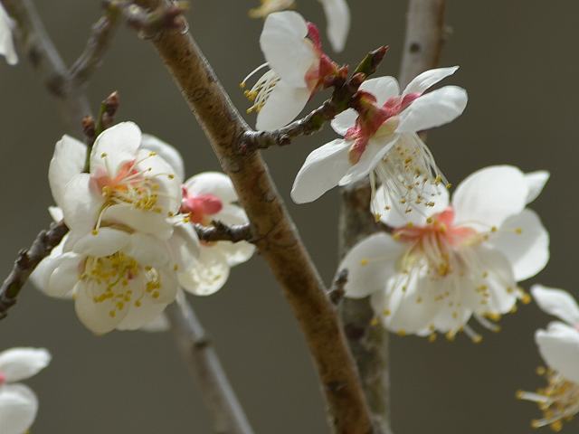 矮性冬至(ワイセイトウジ) 冬の花 2014年03月26日 梅(ウメ)はバラ科サクラ属の落葉小高木である。中国原産で、日本へは古代に渡来した。矮性冬至(ワイセイトウジ)はその園芸品種の1つである。冬至梅(トウジバイ)の仲間で矮鶏野梅(チャボヤバイ)の別称もある矮性品種である。樹高は3メートルから6メートルくらいである。枝は細い。葉は楕円形で、互い違いに生える(互生)。開花時期は12月から2月である。早咲きの品種である。野梅系・野梅性の白い一重咲きの中輪(花径20ミリから25ミリ)である。萼の色は茶色である。花の後にできる実は核果(水分を多く含み中に種が1つある)である。属名の Prunus は「plum(スモモ)」を意味する。種小名の mume は「梅」のことである。写真は3月に小石川植物園で撮った。学名:Prunus mume 'Waisei-touji'★盆栽に向いているんだ地味だけど 味わいのある姿に重み花図鑑植物図鑑|味の麺匠戸田久|おこめの鬼平|フロム蔵王|花の本屋さん|楽天トラベル|