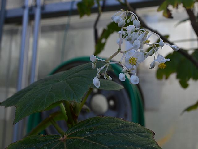 ベゴニア・パルミフォリア 冬の花 2014年03月08日 ベゴニア・パルミフォリアはシュウカイドウ科シュウカイドウ属(ベゴニア属)の多年草である。ベゴニア属は世界に2000種くらいが分布する。日本にも中国原産だが野生化した秋海棠(シュウカイドウ:Begonia grandis)が生育するので、属名の和名をシュウカイドウ属という。本種の原産地はブラジルである。木立性ベゴニアといわれるものの1つである。異名をベゴニア・レニフォルミス(Begonia reniformis)という。草丈は90センチから120センチくらいである。茎は太く、赤い毛が生えている。茎の下部につく腎形の葉は大きく葡萄(ブドウ)に似ていて、手のひら状に裂ける。開花時期は冬から春である。茎先に集散花序(茎先に花がつき、少し下から横枝が出てその先にも花がつく)を出し、花径1センチから2センチの小さな白い花をつける。花被片は4枚である。花の後にできる実はさく果(熟すると下部が裂け、種子が散布される果実)である。属名の Begonia はフランス人でフランス領アンティル諸島の総督だった「ベゴン(Michel Begon, 1638-1710)さん」の名からきている。ベゴニアの仲間数種をヨーロッパに紹介した。種小名の palmifolia は「手のひら状の葉の」という意味である。写真は2月に北大植物園で撮った。学名:Begonia palmifolia(syn. Begonia reniformis)★ベゴニアの原種見るのは面白い 花だけ見てもわからぬけれど花図鑑植物図鑑|味の麺匠戸田久|おこめの鬼平|フロム蔵王|花の本屋さん|楽天トラベル|PR