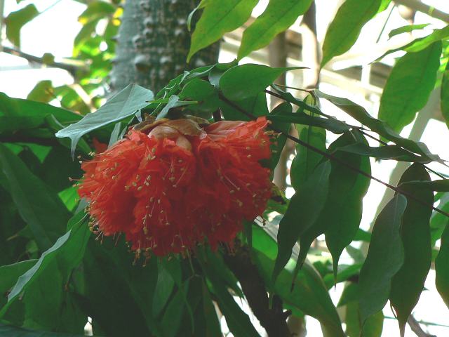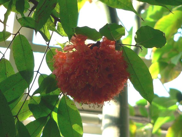 宝冠木(ホウカンボク) 四季咲きの花 2014年01月25日 宝冠木(ホウカンボク)はマメ科ブロウネア属の常緑小高木である。分類体系によってはジャケツイバラ科とされる。ブロウネア属は中南アメリカに30種くらいが分布する。属名の読み方は「ブラウネア」とするものもある。本種の原産地はトリニダード・トバコ、ベネズエラ、ガイアナ、ブラジルである。熱帯地方の各地で花木として植えられている。学名のブロウネア・コッキネアで表示するものもある。樹高は3~6メートルくらいである。葉は偶数羽状複葉(鳥の羽のように左右に小葉がいくつか並んで1枚の葉が構成される)で、互い違いに生える(互生)。小葉の形は長い楕円形で、下に垂れる。開花時期は周年である。花は幹に直接つく幹生花である。花の色は朱赤色で、石楠花(シャクナゲ)に似た感じでボール状に集まってぶら下がる。花の後にできる実は豆果(莢の中に種子が入るもの)である。近縁種に大宝冠木(オオホウカンボク)がある。属名の Brownea はアイルランドの植物学者「ブラウン(Patrick Browne, 1720-1790)さん」の名からきている。種小名の coccinea は「赤い」という意味である。写真は2月に新宿御苑で撮った。学名:Brownea coccinea★玉と咲く宝冠木は暗がりに 溶け込むような朱の色をして花図鑑植物図鑑|味の麺匠戸田久|おこめの鬼平|フロム蔵王|花の本屋さん|楽天トラベル|