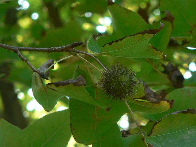 楓(フウ) 春の花 2013年12月08日 楓(フウ)はマンサク科フウ属の落葉高木である。分類体系によってはフウ科とされる。原産地は台湾や中国の南部である。別名を台湾楓(タイワンフウ)という。日本へは江戸時代の中期に渡来した。現在では街路樹や公園樹として広く植えられている。樹高は10~20メートルくらいである。葉は3つに浅く切れ込み、互い違いに生える(互生)。葉の縁にはぎざぎざ(鋸歯)がある。雌雄同株である。開花時期は4月ころである。花は球形をしていて花弁はない。花の色は緑色である。花の後にできる実は球形の集合果でイガ状になる。また、秋には美しく黄葉する。材は建築材として利用される。属名の Liquidambar はラテン語の「liquidus(液体)」とアラビア語の「 ambar(琥珀色)」からきている。樹液の様子から名づけられた。種小名の formosana は「台湾の」という意味である。写真は11月に沖縄県本部町の熱帯・亜熱帯都市緑化植物園で撮った。学名:Liquidambar formosana★あるがまま地に根を下ろす楓の樹の 姿にどこか安堵を覚え花図鑑植物図鑑|味の麺匠戸田久|おこめの鬼平|フロム蔵王|花の本屋さん|楽天トラベル|