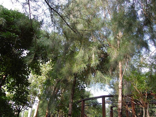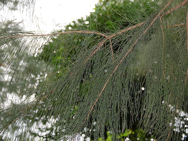 砥草葉木麻黄(トクサバモクマオウ) 観葉植物 2013年12月09日 砥草葉木麻黄(トクサバモクマオウ)はモクマオウ科モクマオウ属の常緑高木である。原産地はビルマ、ベトナム、マレーシア、南太平洋諸島、オーストラリアなどである。日本へは明治時代の初期に渡来し、小笠原諸島や沖縄諸島で観賞用などとして植栽されている。和名の由来は、薬草の麻黄(マオウ)に似ていて葉が砥草(トクサ)に似た木という意味である。単に木麻黄(モクマオウ)と呼ばれることもある。また、別名を常磐御柳(トキワギョリュウ)ともいう。樹高は10~30メートルくらいである。樹皮は灰褐色で繊維状に剥げる。樹冠は円錐形である。枝は垂れ下がるものが多い。葉は退化しており、節に鱗片葉が輪になって生える(輪生)。開花時期は10月である。雌雄同株である。花の色は淡い緑白色である。雄花序は円柱形で枝先につき、雌花序は球形で枝のつけ根につく。花の後にできる実は木質で楕円形をしており、マツカサ状である。材は建築材、土木用材、燃料材とされる。樹皮は染料となる。属名の Casuarina はラテン語の「casuarius(ヒクイドリ)」からきている。枝葉の様子が似ていることから名づけられた。種小名の equisetifolia は「トクサ属(Equisetum)のような葉の」という意味である。写真は12月に沖縄県本部町の熱帯・亜熱帯都市緑化植物園で撮った。学名:Casuarina equisetifolia★雑然と見える葉っぱは砥草のよう 変わった木だね何に使うの花図鑑植物図鑑|味の麺匠戸田久|おこめの鬼平|フロム蔵王|花の本屋さん|楽天トラベル|