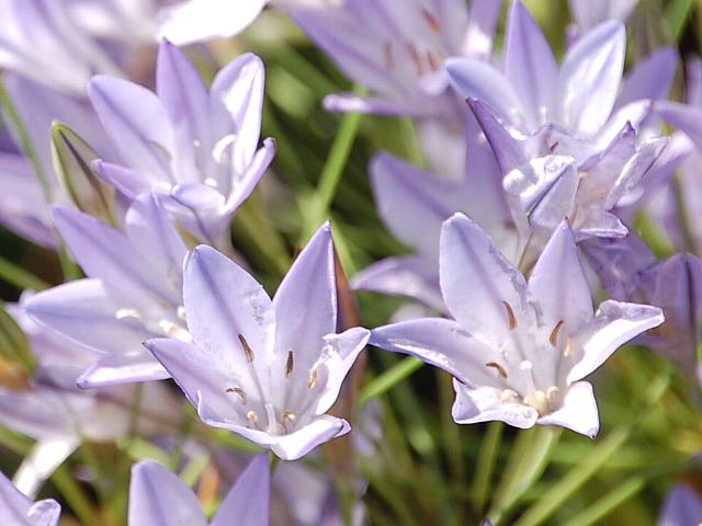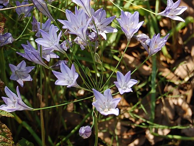 トリテレイア・ブリゲシー 夏の花 2016年06月08日 トリテレイア・ブリゲシーはユリ科トリテレイア属の多年草である。分類体系によっては(APG第3版)クサスギカズラ科とされる。トリテレイア属は北アメリカに14種が分布する。本種はアメリカ合衆国のオレゴン州からカリフォルニア州にかけて分布し、蛇紋岩地の低山の斜面などに生える。学名はトリテレイア・ブリッジェシーとするものもあり、これは人名に近づけた読み方である。英名はブリッジスブローディア(Bridges' brodiaea)である。草丈は30センチから60センチくらいである。根際から生える葉は線形である。開花時期は4月から6月である。茎先に散形花序(たくさん枝が出て、先に1個つずつ花がつく)を出し、長さ4センチくらいのユリ形の筒状花を10数輪つける。花被片は6枚で、雄しべも6本である。花の色は淡い紫色で、青紫のものやピンクがかったものもある。花の後にできる実はさく果(熟すると下部が裂け、種子が散布される果実)である。園芸的には旧属名を英語読みしたブローディア (Brodiaea) の名で流通している。ただし、これは総称であり本種が多いが本種のみではない。花言葉は「淡い恋」である。属名の Triteleia はギリシャ語の「treis(3)+teleios(完全な)」からきている。各器官が完全に3の倍数で成り立つことから名づけられた。種小名の bridgesii はアメリカ人の植物学者「ブリッジス(Thomas Bridges, 1807-1865)さんの」という意味である。写真は6月に神奈川県立フラワーセンター大船植物園で撮った。学名:Triteleia bridgesii★花韮とよく似た花が咲くんだね 北アメリカに独自の姿花図鑑植物図鑑ミラーサイト|味の麺匠戸田久|おこめの鬼平|フロム蔵王|花の本屋さん|楽天トラベル|